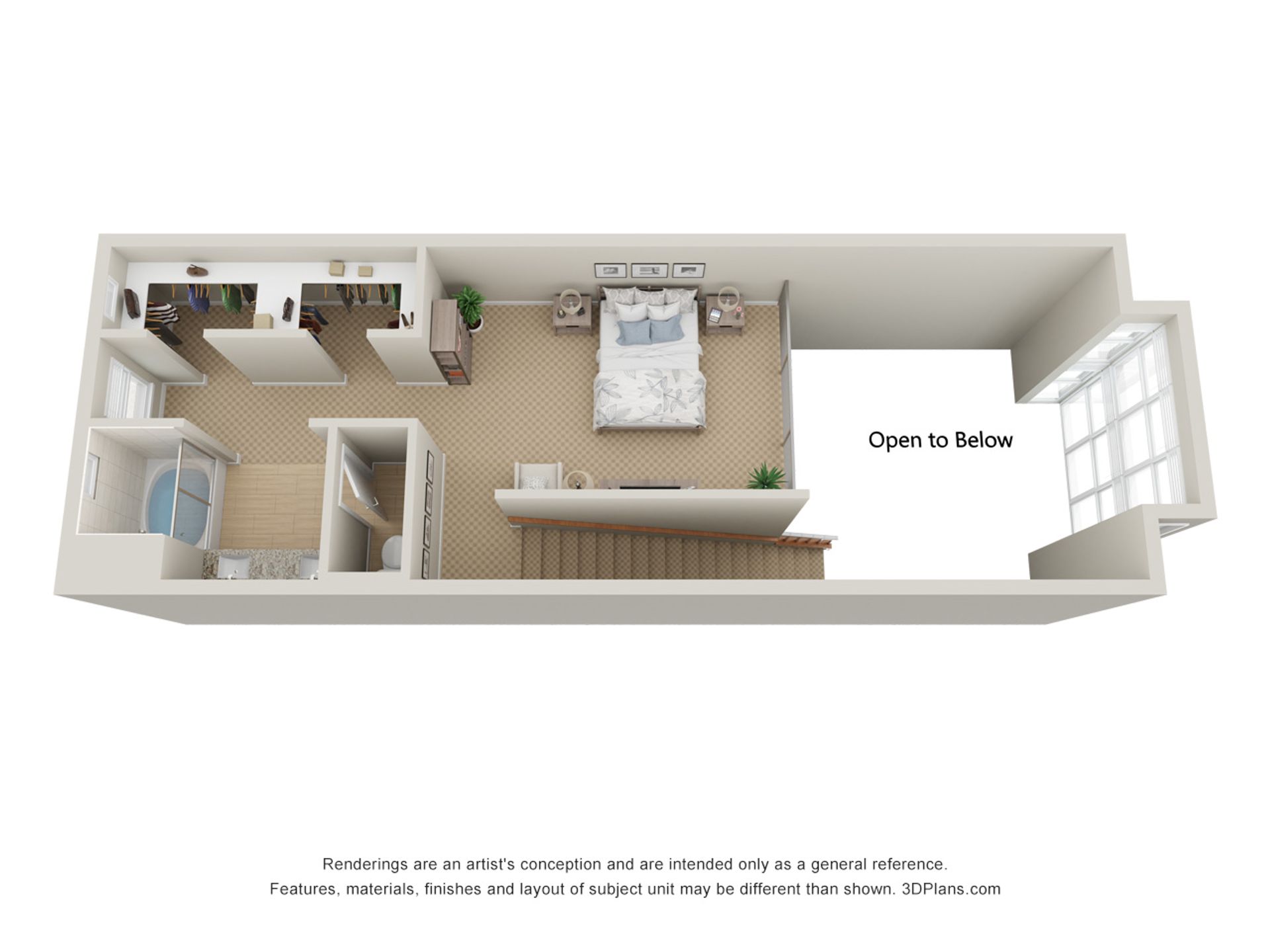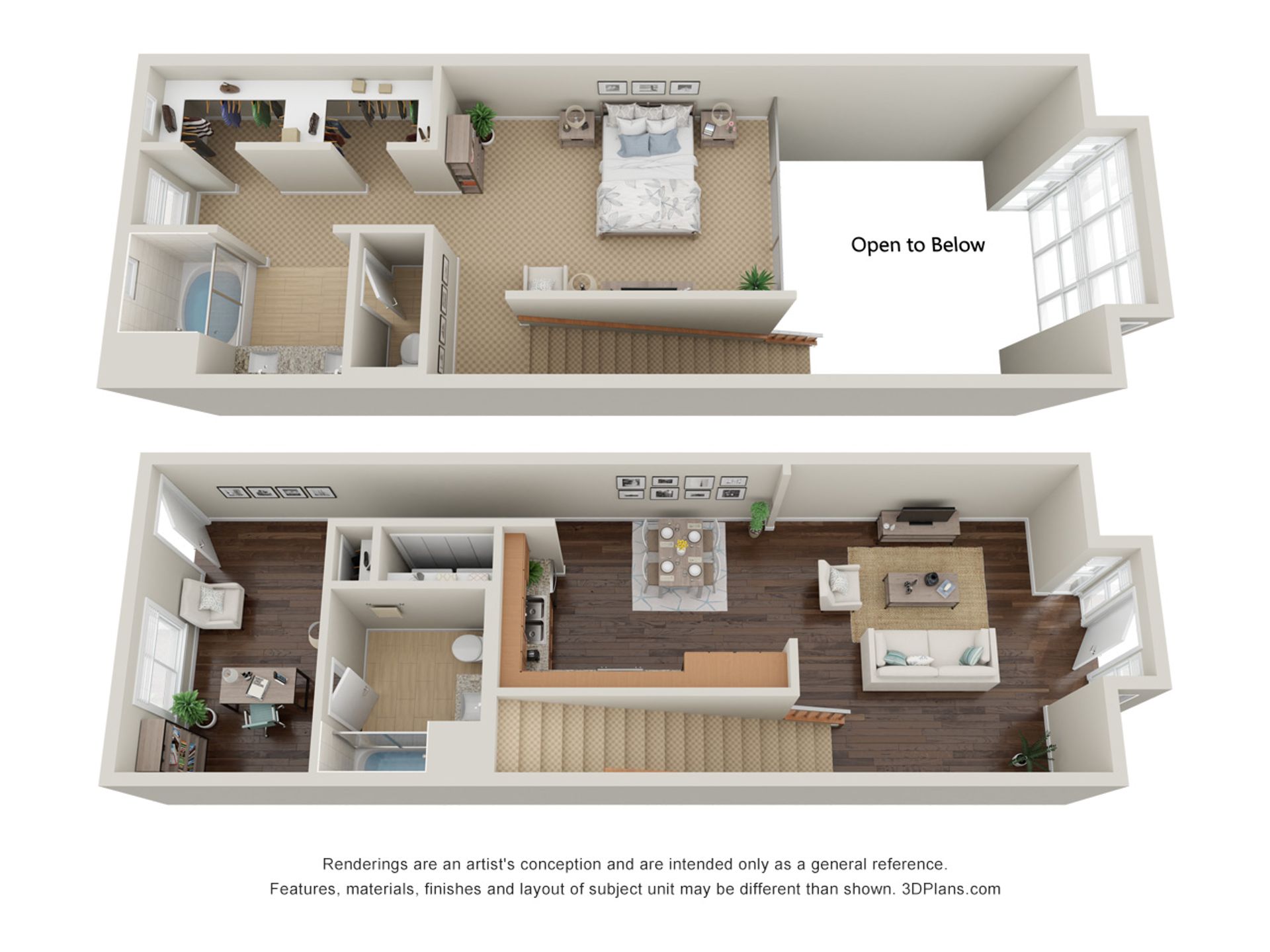 Limited-time offer: 1-week concession! Spacious 1 bedroom, 2 bath loft with vaulted ceilings and floor-to-ceiling windows!